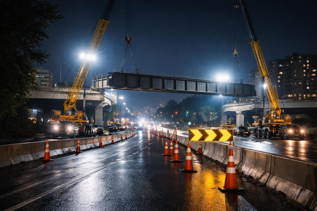 Primarul Sectorului 4, Daniel Băluță, a comunicat că o nouă secțiune a tablierului metalic a ajuns pe șantier în noaptea precedentă, iar montajul va continua diseară cu o altă secțiune. Avizul autorităților subliniază necesitatea păstrării unei distanțe de siguranță în dreptul șantierului, recomandând conducătorilor să evite zona sau să circule cu prudență și să respecte indicațiile echipelor de lucru.